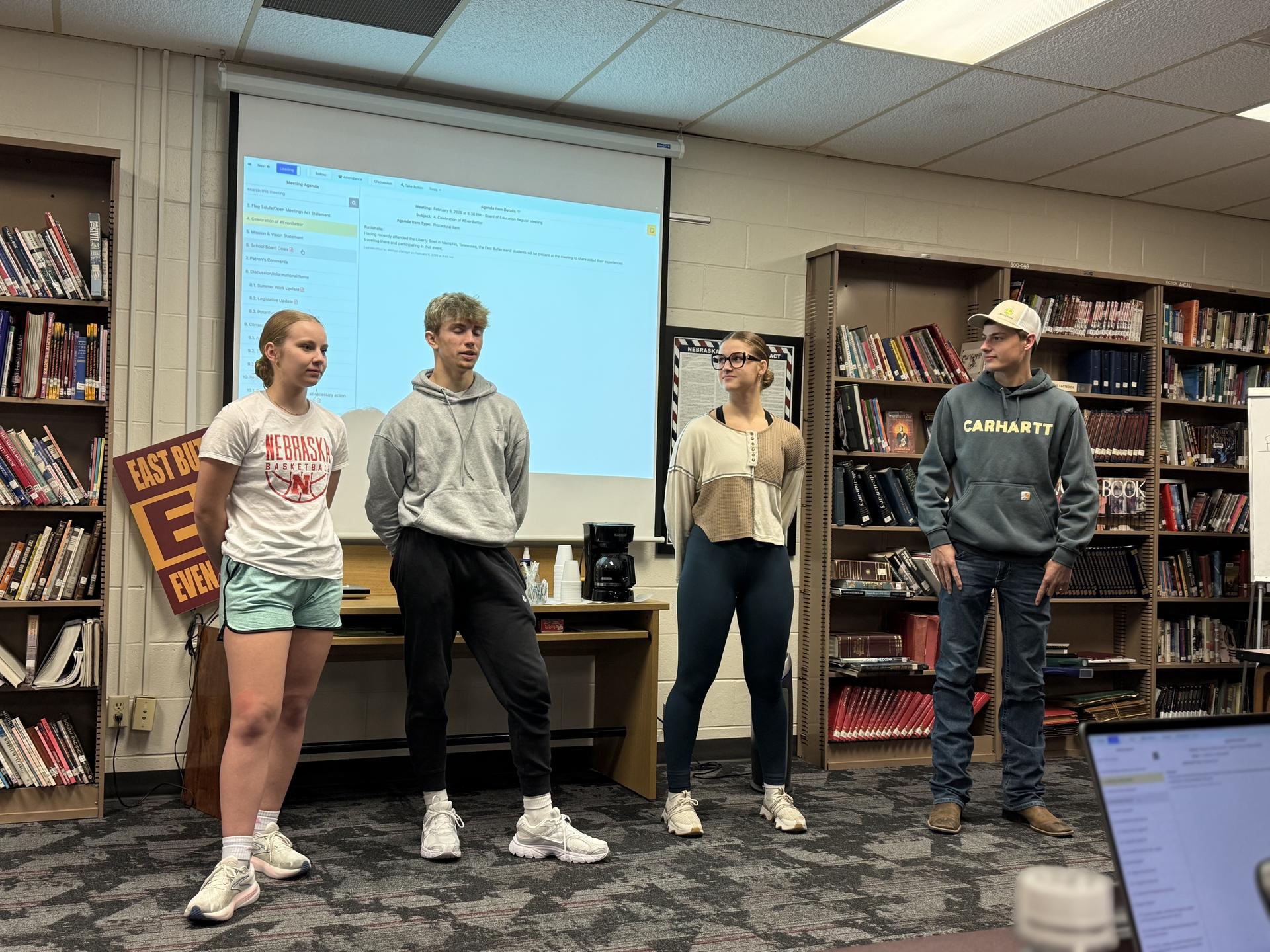 Members of the high school band were present to talk and share with the board about their recent trip to Memphis, Tennessee. The high school board was able to participate in the Liberty Bowl parade and halftime show on January 2nd. |